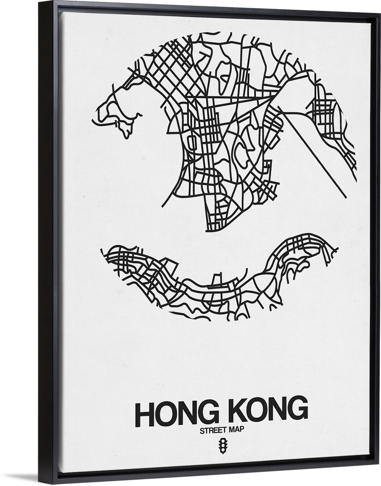 <p>Minimalist art map of the city streets of Hong Kong in white and black.</p>