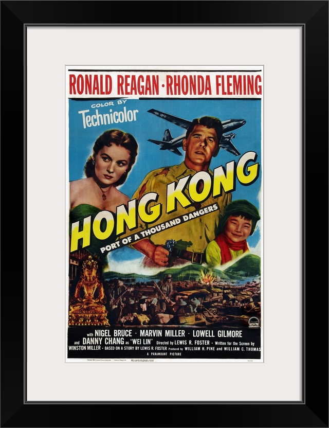 <p>Hong Kong, US Poster Art, From Left: Rhonda Fleming, Ronald Reagan, Danny Chang, 1952</p>