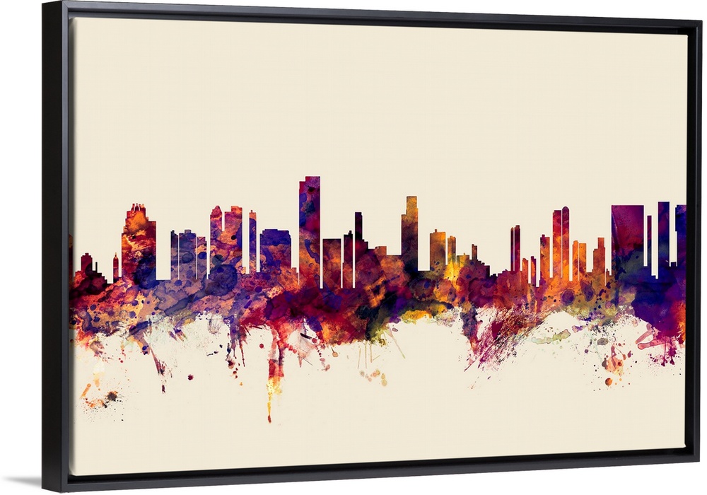 <p>Contemporary artwork of the Honolulu city skyline in watercolor paint splashes.</p>