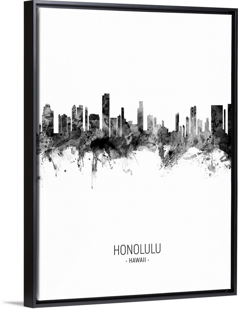 <p>Watercolor art print of the skyline of Honolulu, Hawaii, United States</p>