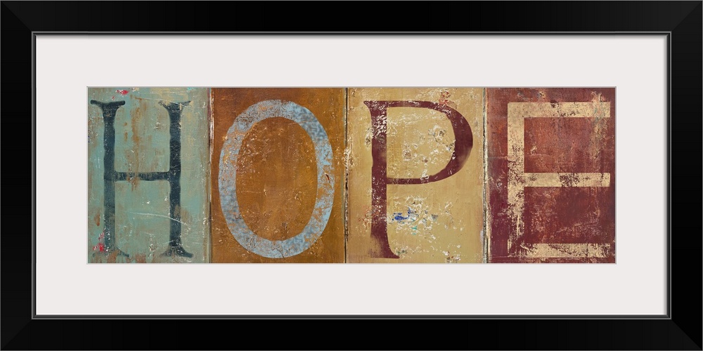 <p>This is a horizontal decorative accent created with panels of painted letters attached to each other and reproduced as a Giclee print.</p>