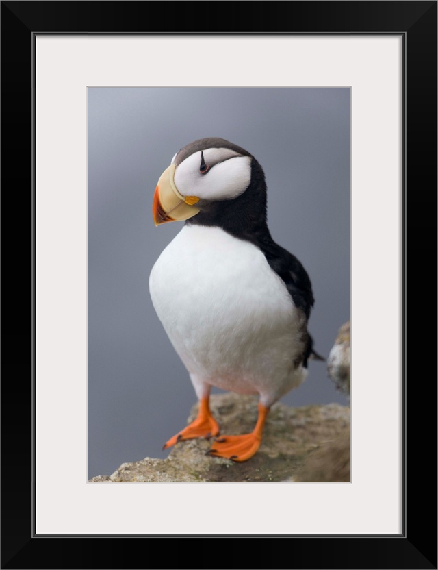 <p>Horned Puffin with wings outstretched, Saint Paul Island, Pribilof Islands, Bering Sea, Southwest Alaska</p>