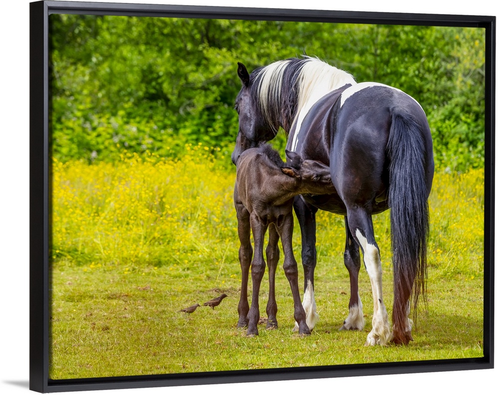 <p>Horse and foal standing together in a pasture; Saskatchewan, Canada</p>