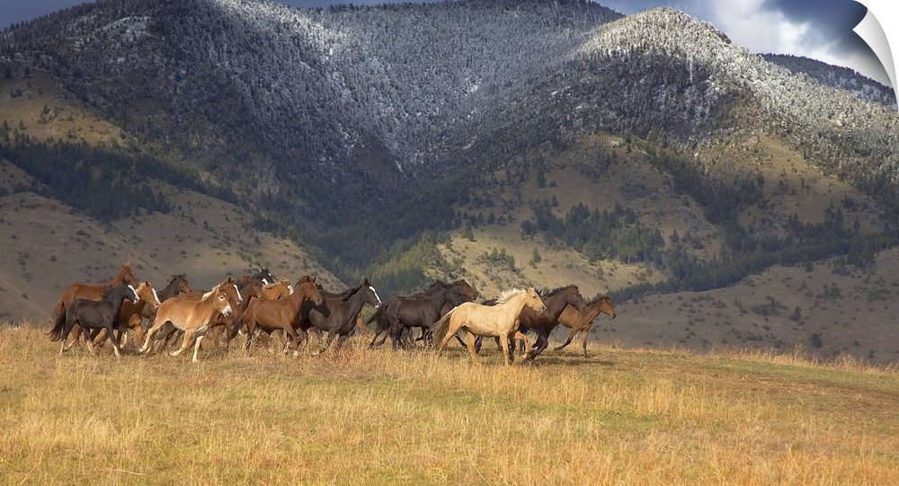 <p>'Horse and mule stampede in the Bridger Mountains, Northern Montana'</p>