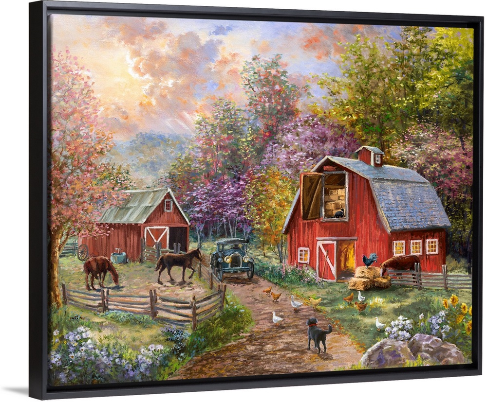 <p>Nicky Boehme imagines a world full of light and goodness in paintings that capture idyllic scenes of the laid-back life. Boehme is the consummate artist who painted as a young child and throughout her storied professional life. The dramatic interplay of light, color and mood create soothing scenery for wall art that will complement the atmosphere in quiet spaces such as bedrooms, reading nooks or dens. The world through the eyes and skilled brush strokes of Nicky Boehme glitters with romanticism and realism. You can almost taste the snow flurries covering a winter scene or hear the brook gurgling past a remote homestead.</p>
