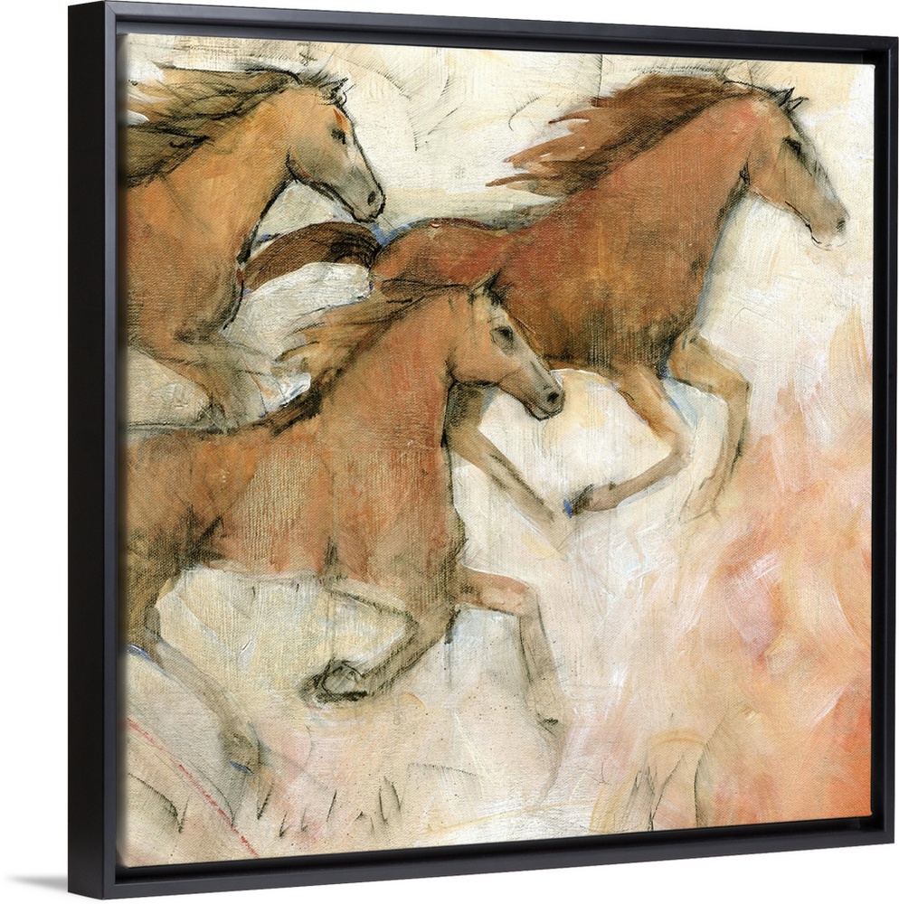 <p>Contemporary painting of galloping horses.</p>
