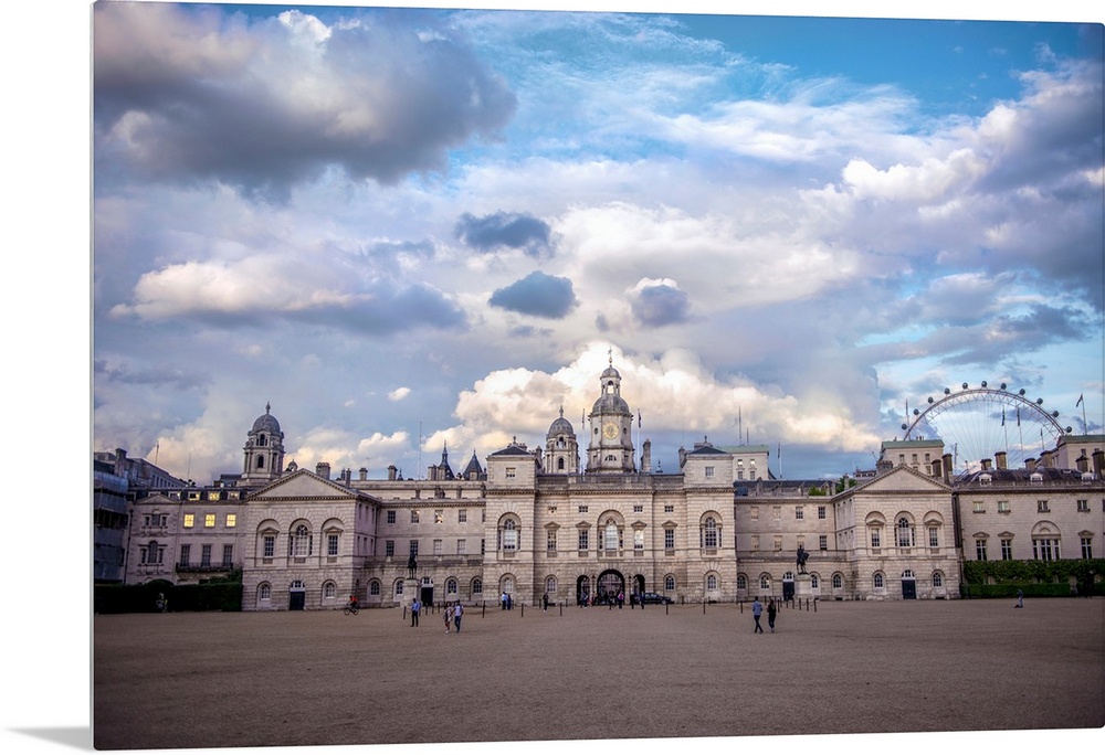 <p>View of Horse Guards building in London, England against a bright blue sky.</p>