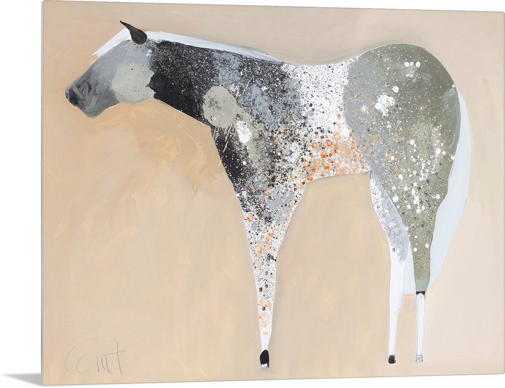 <p>A contemporary painting of a gray horse against a neutral background.</p>