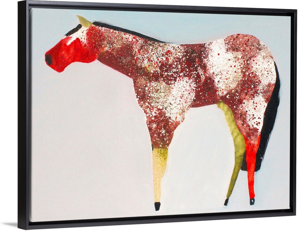 <p>A contemporary painting of a multi-colored horse against a neutral background.</p>