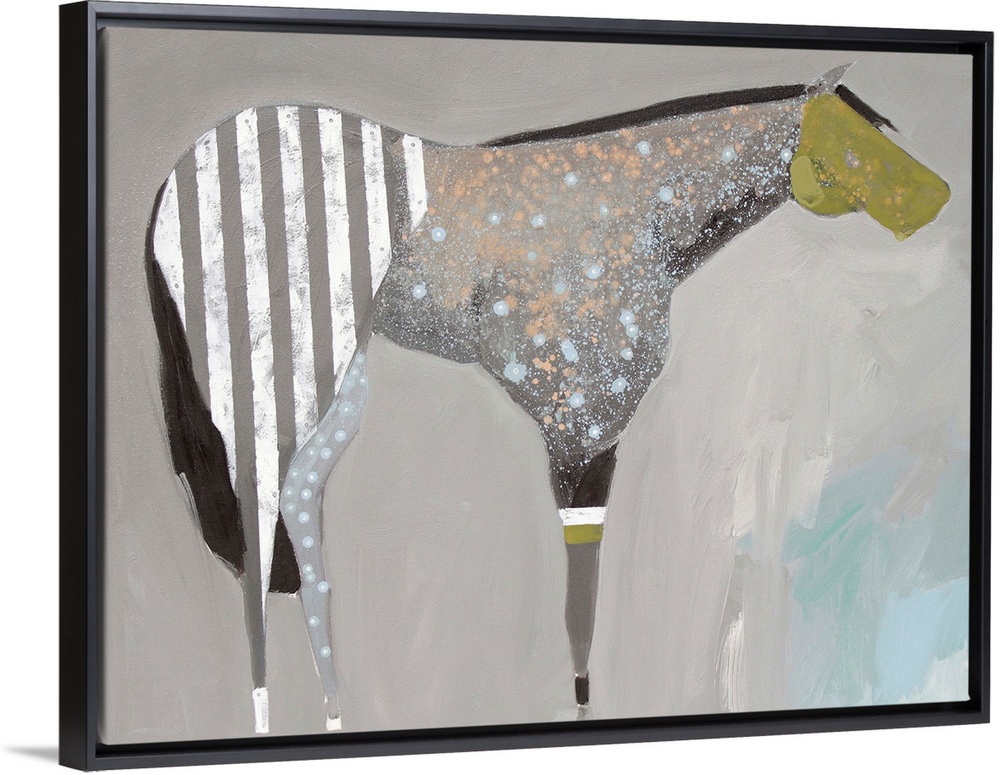 <p>A contemporary painting of a multi-colored horse against a neutral background.</p>