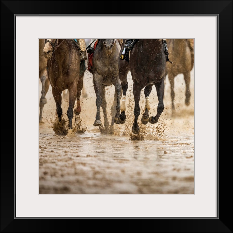 <p>Horse racing on a muddy track</p>