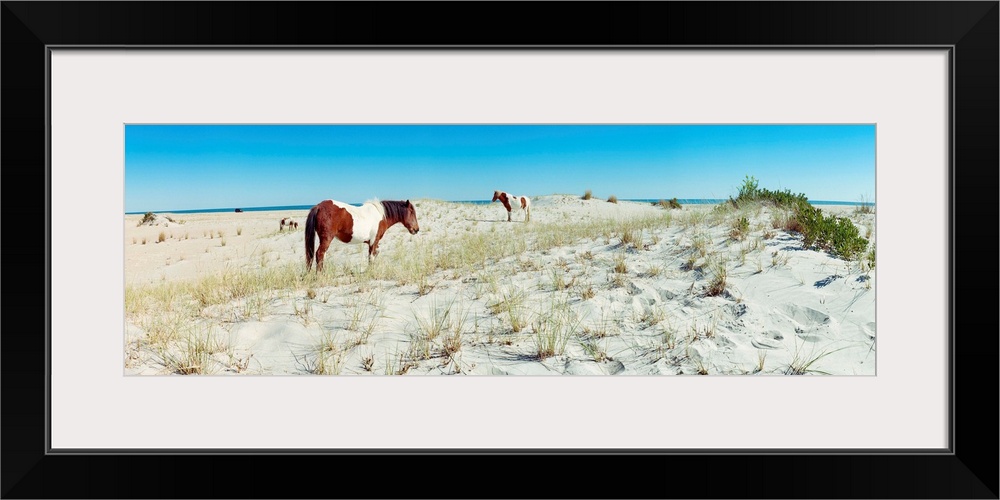 <p>Horses grazing on beach, assateague island, delmarva peninsula, maryland, USA.</p>
