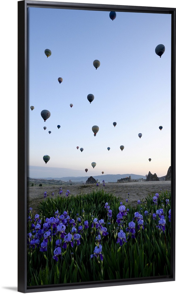 <p>Hot air balloons above ground, Goreme, Cappodocia, Turkey</p>