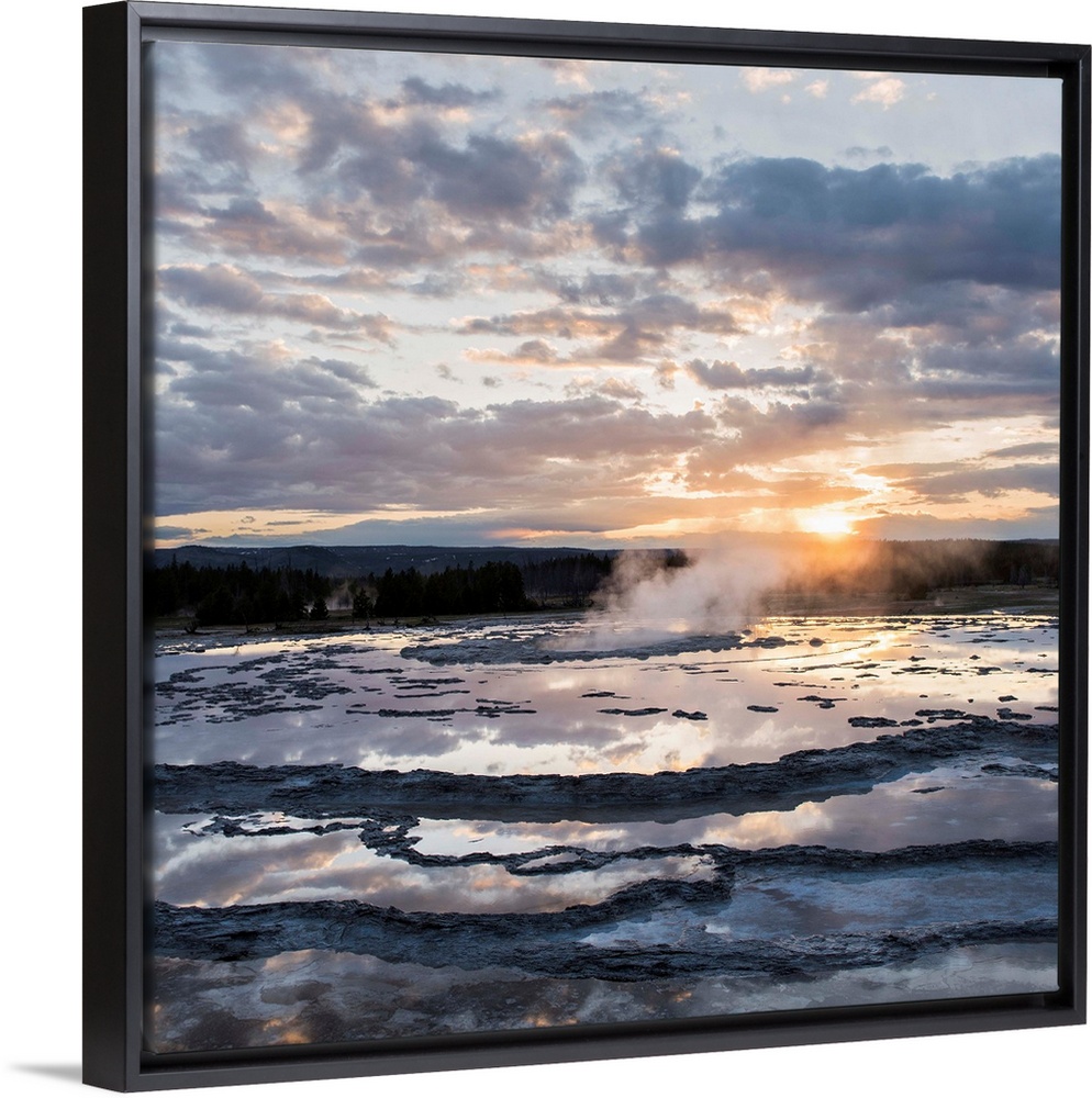 <p>Beautiful sunset over the hot springs at Yellowstone National Park.</p>
