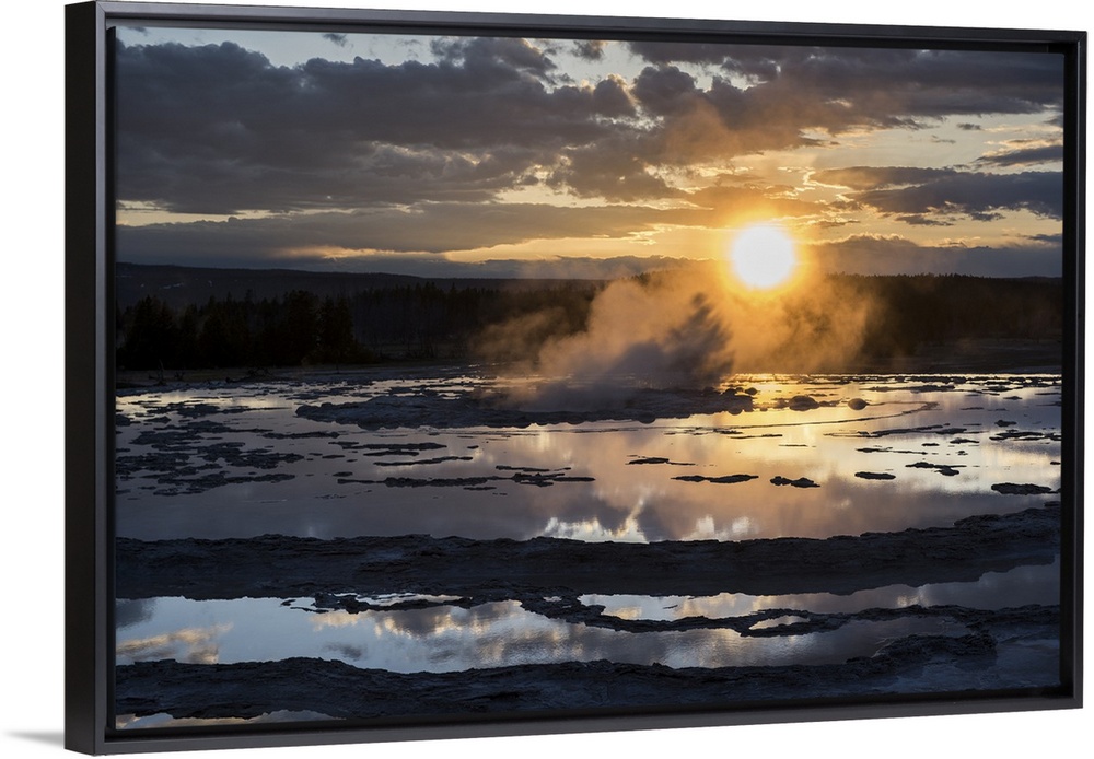 <p>Beautiful sunset over the hot springs at Yellowstone National Park.</p>