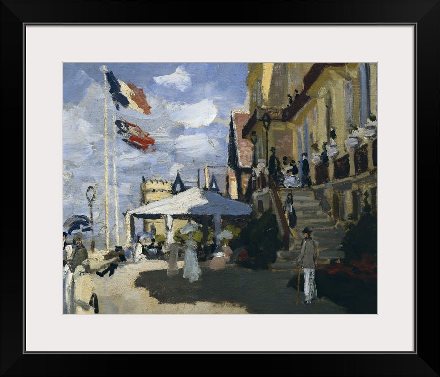 <p>MONET, Claude (1840-1926). Hotel des Roches-Noires in Trouville. 1870. Central detail. Impressionism. Oil on canvas. FRANCE. Paris. Musee d'Orsay (Orsay Museum). -</p>