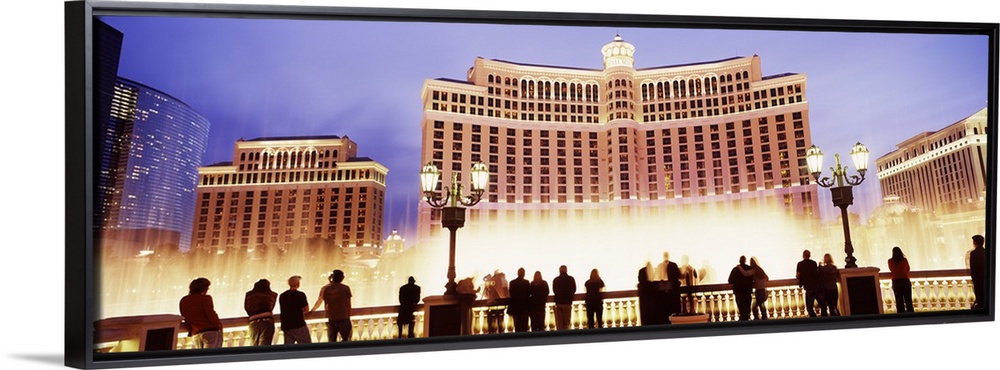 <p>Large horizontal panoramic photograph of the Bellagio Resort and Casino lit up on the Las Vegas, Nevada (NV) Strip.</p>