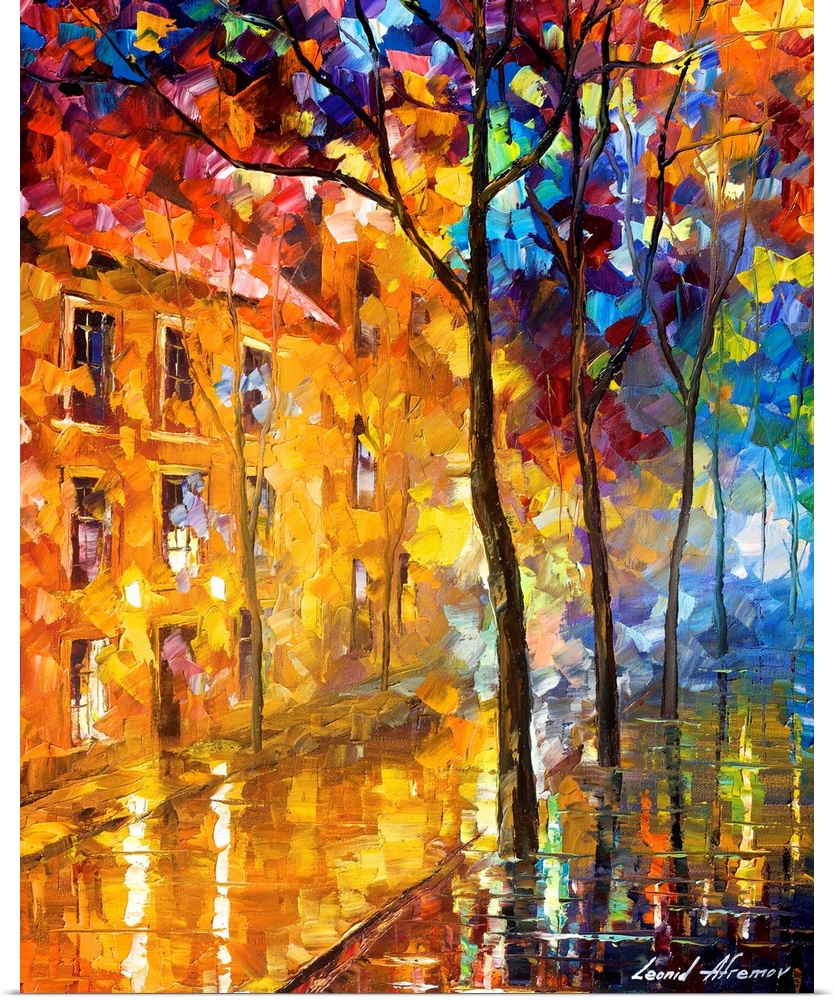Leonid Afremov Architecture Art Impressionism Contemporary Art Landscapes Trees Multicolor Wall Art Painting
