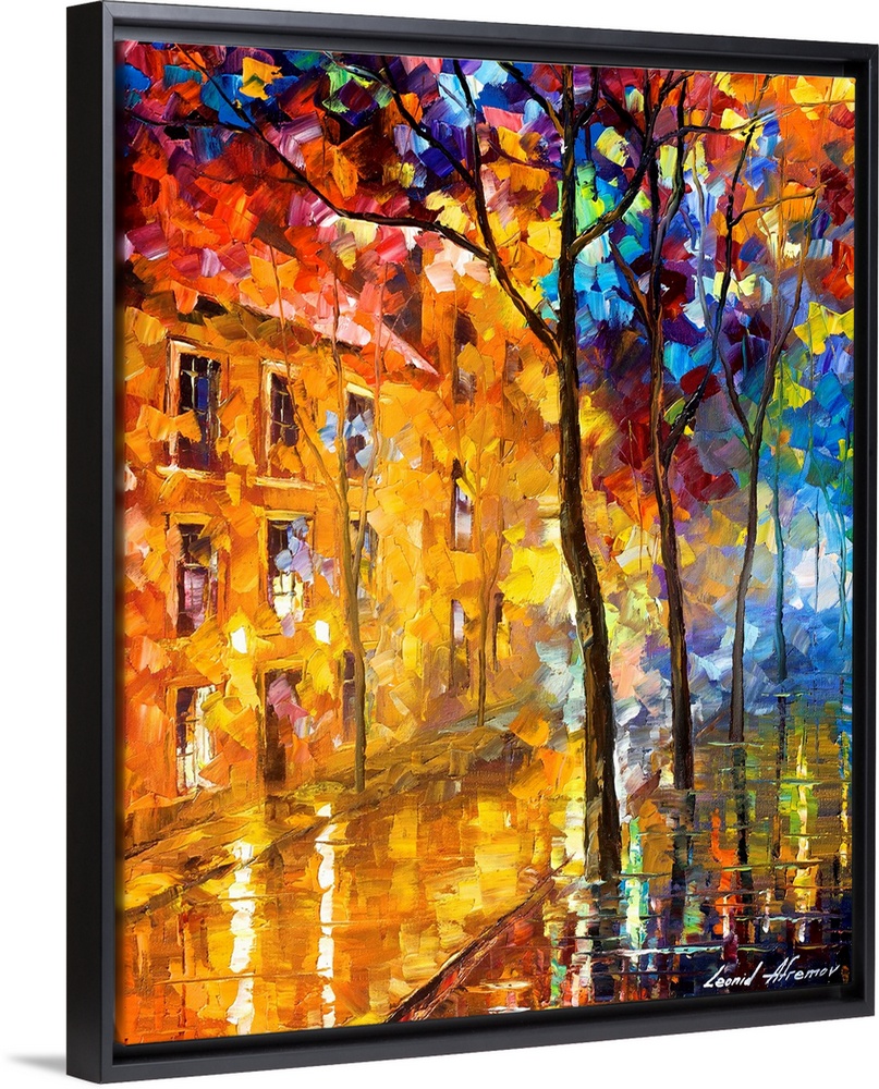 <p>Leonid Afremov was an extraordinarily prolific contemporary artist with a style all his own. His palette knife paintings depict people, cities, seascapes, gardens and animals in bold colors. Afremov’s love for brilliant colors may be cathartic, an affirmation that he had risen above the struggles and drudgery that plagued him early in his career in Russia and Israel. Afremov’s intricate and timeless paintings make spectacular canvas prints that will add a touch of sophistication and charm to any room.</p>