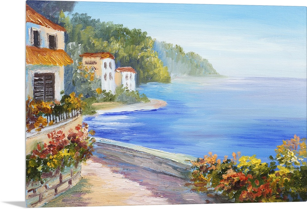 <p>Originally an oil painting of a house near the sea. Colorful flowers, summer seascape.</p>