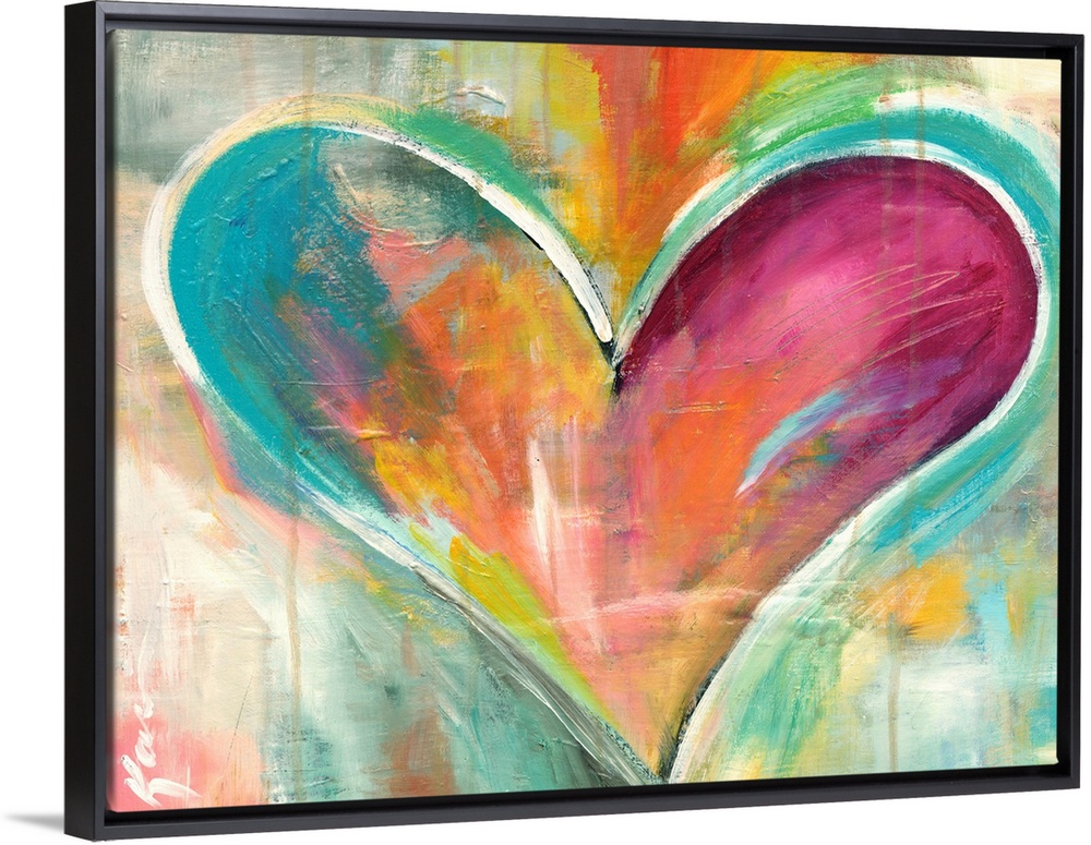 <p>Full of warmth and emotion, this heart artwork is shaped by varying brush strokes bright purples and soft blues with paint drips.</p>