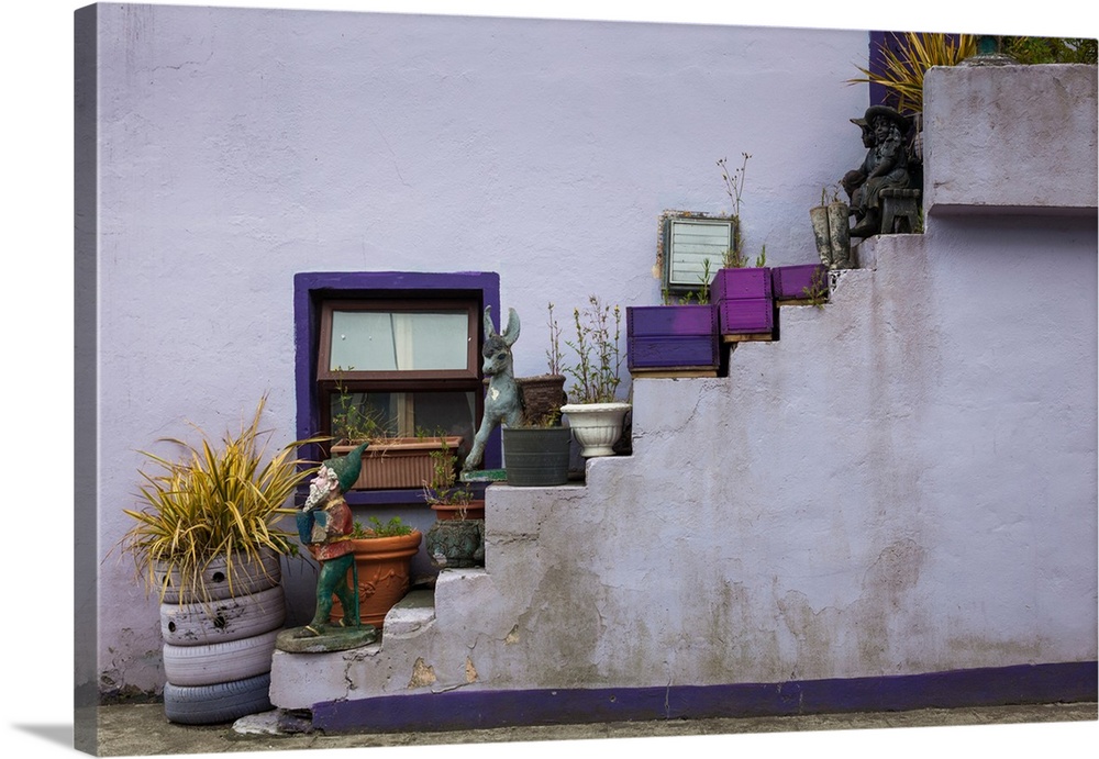 <p>House stairs with fantasy statues, castletownbere, ring of beara, beara peninsula, County Cork, munster province, Ireland.</p>