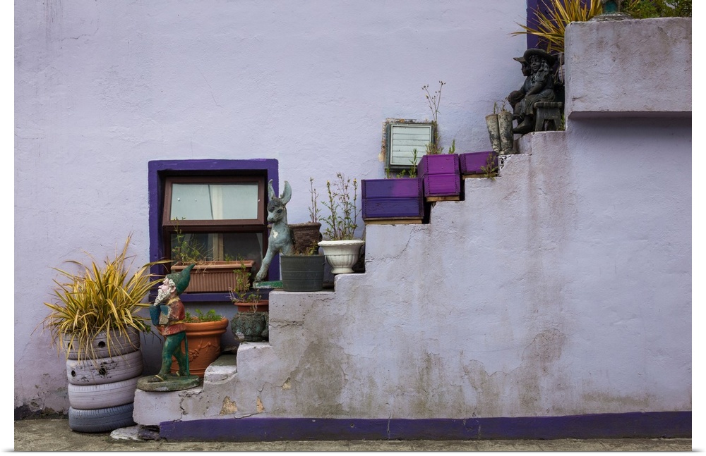 <p>House stairs with fantasy statues, castletownbere, ring of beara, beara peninsula, County Cork, munster province, Ireland.</p>