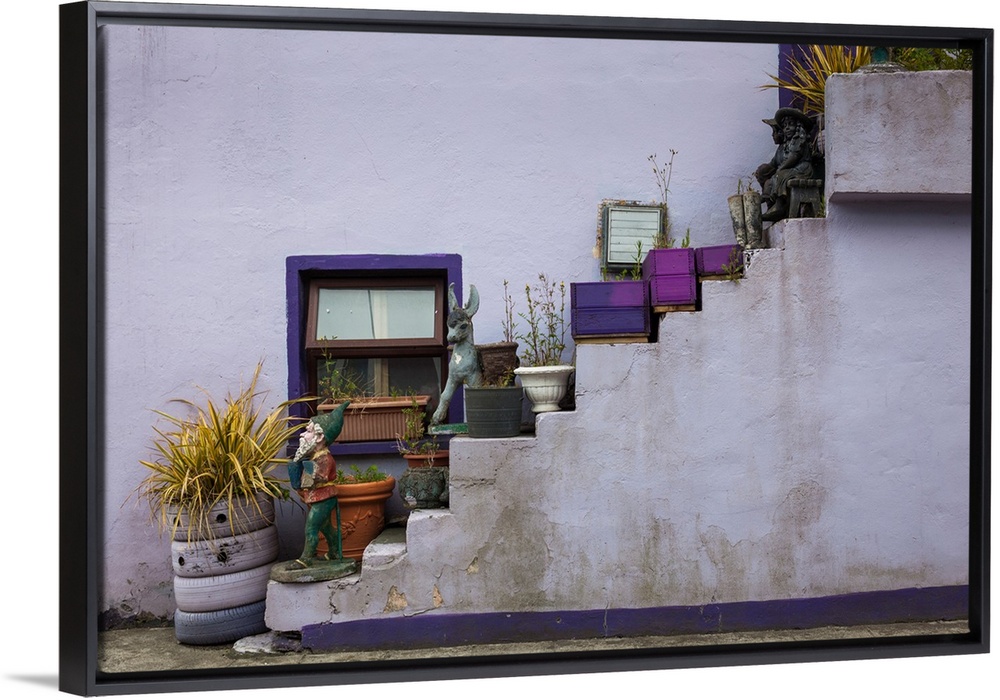 <p>House stairs with fantasy statues, castletownbere, ring of beara, beara peninsula, County Cork, munster province, Ireland.</p>