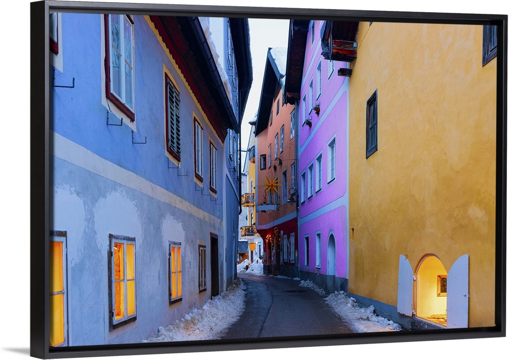 <p>Houses on Narrow street in Hallstatt near Salzburg in Austria, Europe in Winter.</p>