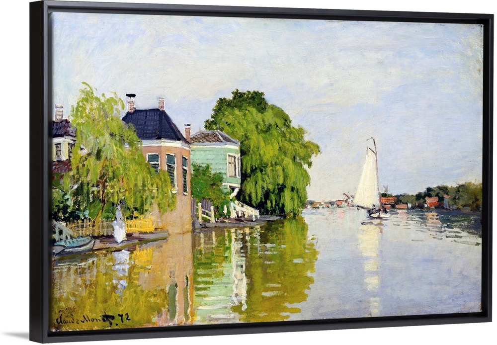 <p>On the advice of the French painter Charles-Francois Daubigny, Claude Monet traveled to the Netherlands in 1871, where he painted this landscape of limpid waters and azure skies along the Achterzaan River in Zaandam. Writing to fellow Impressionist Camille Pissarro, Monet noted the pleasures of painting the picturesque Dutch landscape: This is a superb place for painting. There are the most amusing things everywhere: hundreds of windmills and enchanting boats, extremely friendly Dutchmen Using a limited palette of varying shades of green, Monet has captured the hazy atmosphere and light-dappled water of this picturesque Dutch port. Monet's Dutch landscapes were widely admired by other contemporary artists, especially Daubigny, whose own studies of light and water share an affinity.</p>