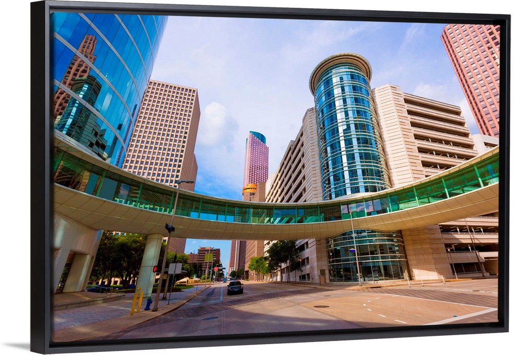 <p>Downtown Houston skyscrapers from Bell and Smith street, Texas.</p>
