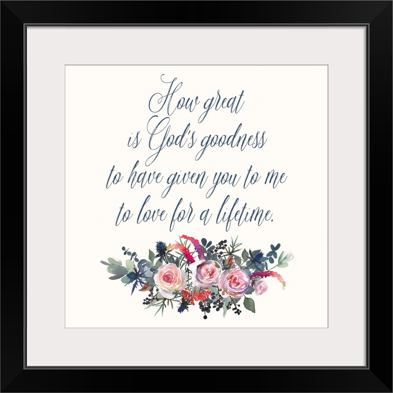 <p>"How Great is God's Goodness to Have Given You to Me to Love For a Lifetime"</p>
