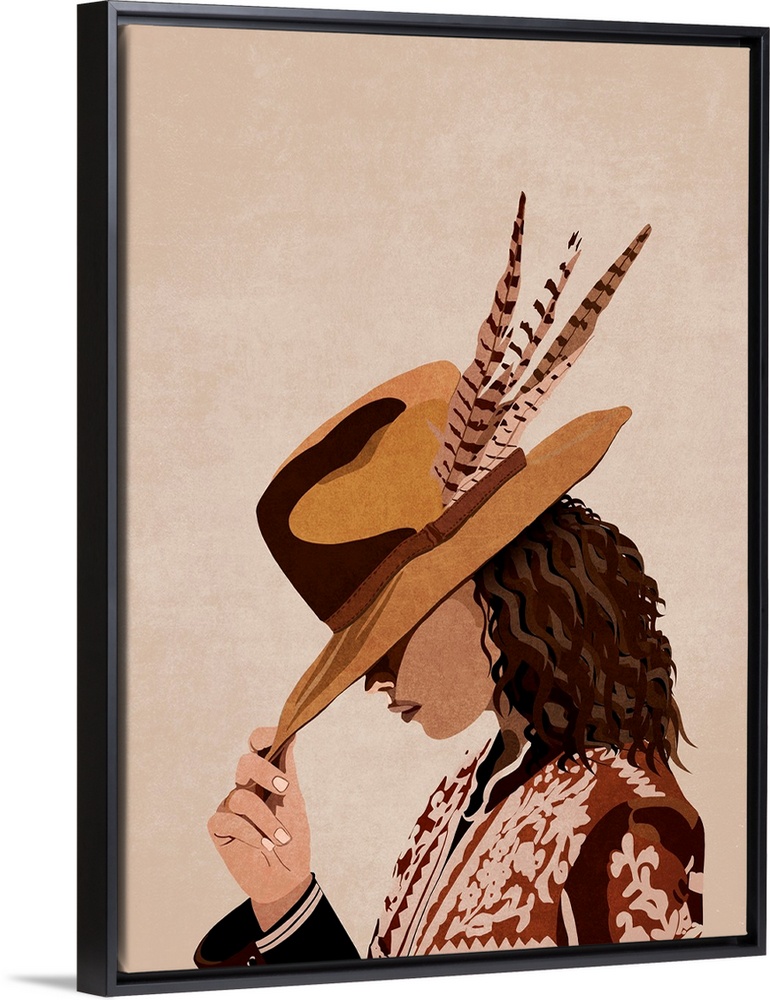 Art Bohemian Brown Wall Art Figurative Howdy Cowgirl Decorative Art Graphic Art People Portraits Emel Tunaboylu