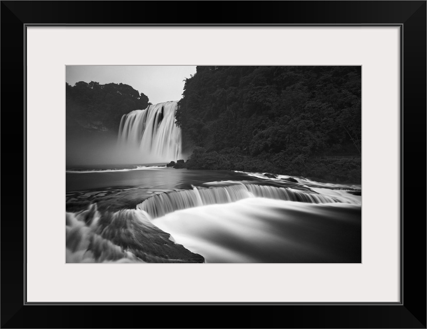 <p>Black and white image of the Huangguoshu waterfalls, the largest waterfalls in China.</p>