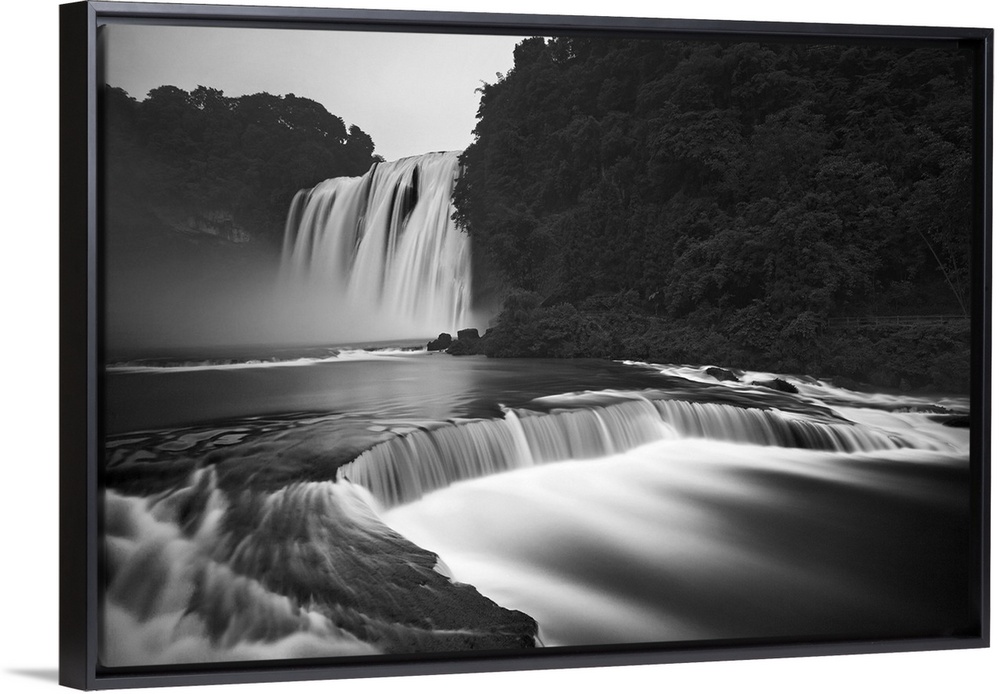 <p>Black and white image of the Huangguoshu waterfalls, the largest waterfalls in China.</p>