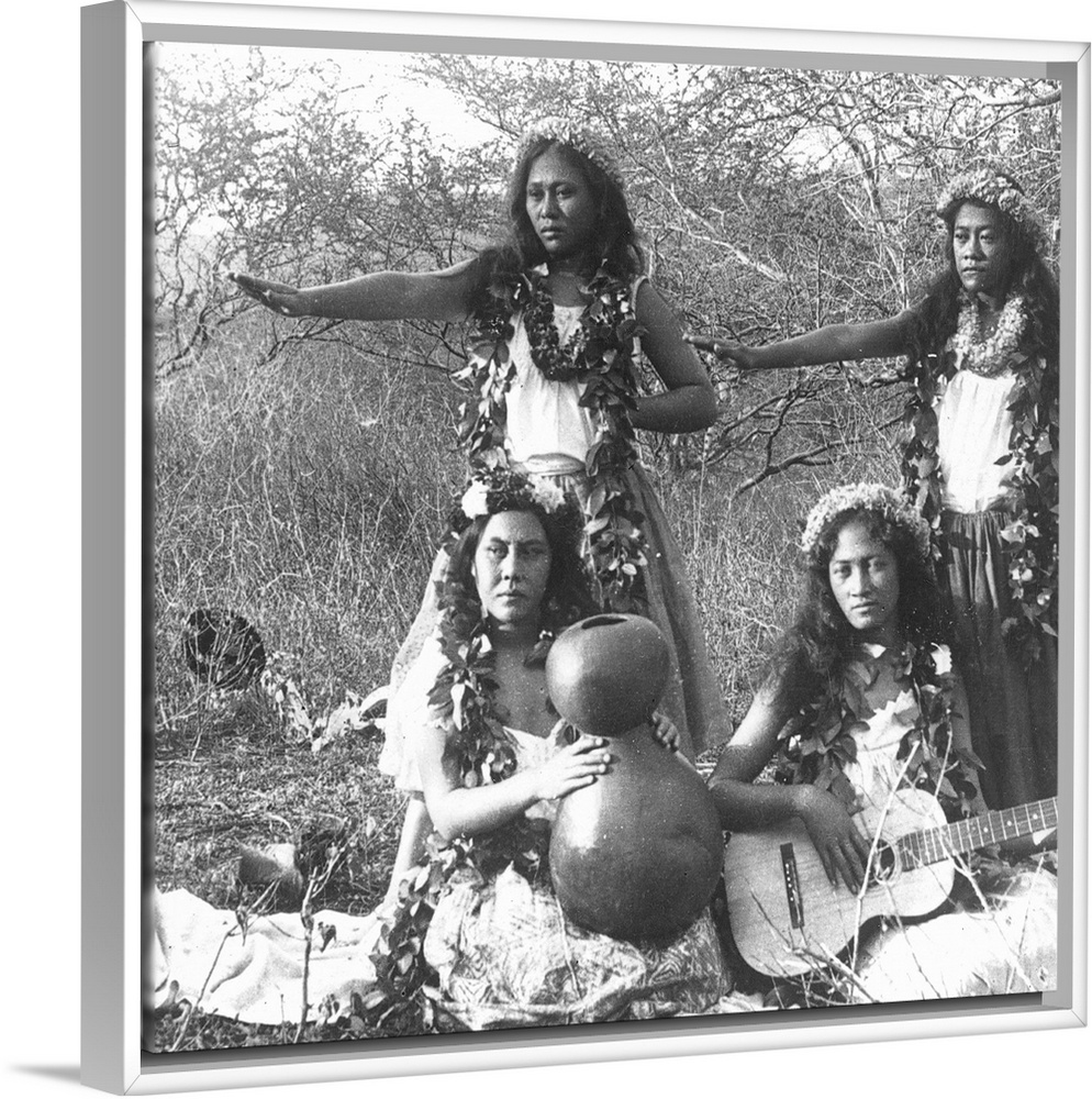 <p>Hula Dancers, C1905. In the Crater Of Punch Bowl Mountain, Oahu, Hawaii. Panel Of Stereograph.</p>