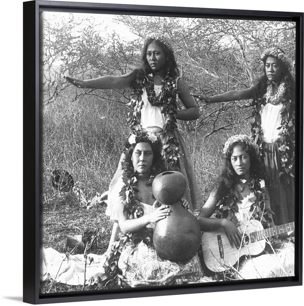 <p>Hula Dancers, C1905. In the Crater Of Punch Bowl Mountain, Oahu, Hawaii. Panel Of Stereograph.</p>