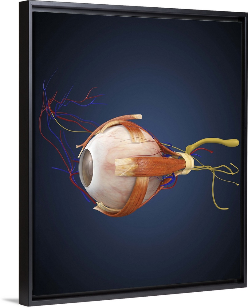 <p>Human eye with muscles and circulatory system.</p>