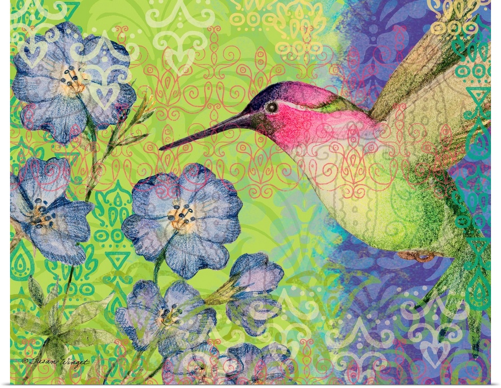 Art Decorative Art Green Wall Art Painting Wildlife Bird Hummingbird Susan Winget