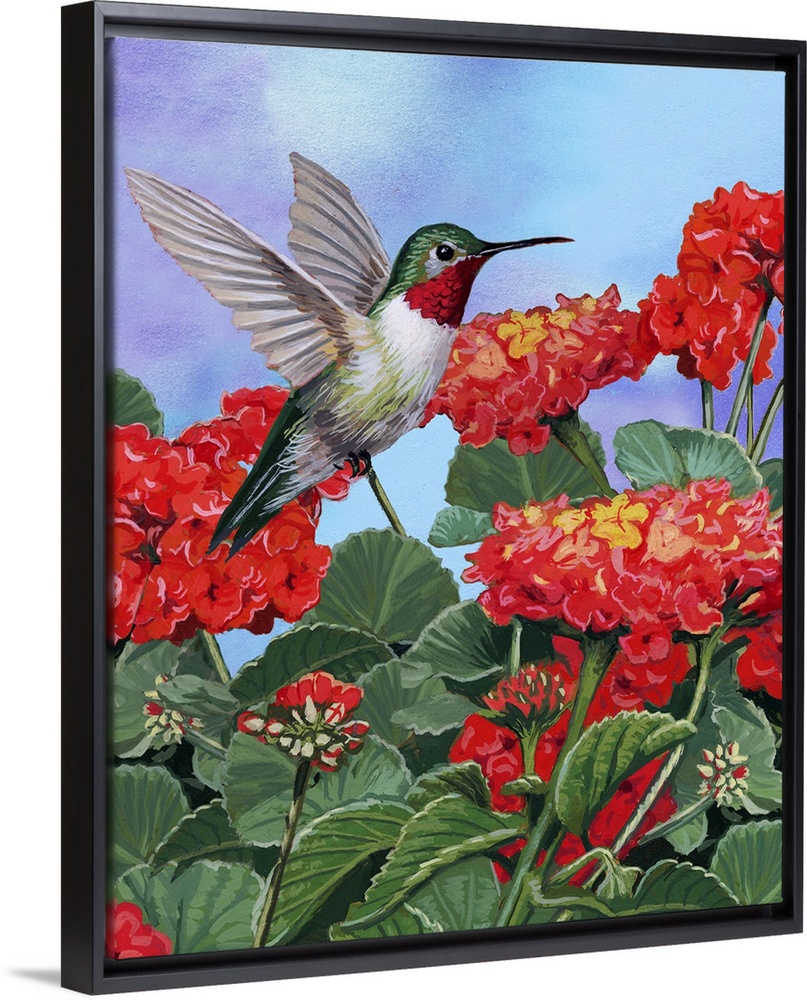 Art Traditional Contemporary Art Florals Hydrangea Painting Red Wall Art William Vanderdasson Wildlife Bird Hummingbird