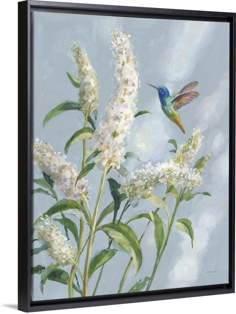Art Blue Flowers Decorative Art Florals Lilacs Danhui Nai Painting Wildlife Bird Hummingbird