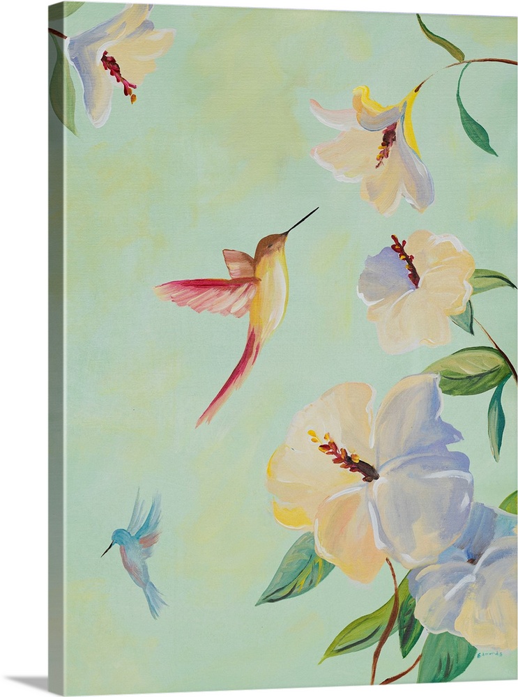 Art Contemporary Art Sydney Edmunds Florals Tropical Flowers Green Wall Art Painting Tropical Watercolor Wildlife Bird Hummingbird
