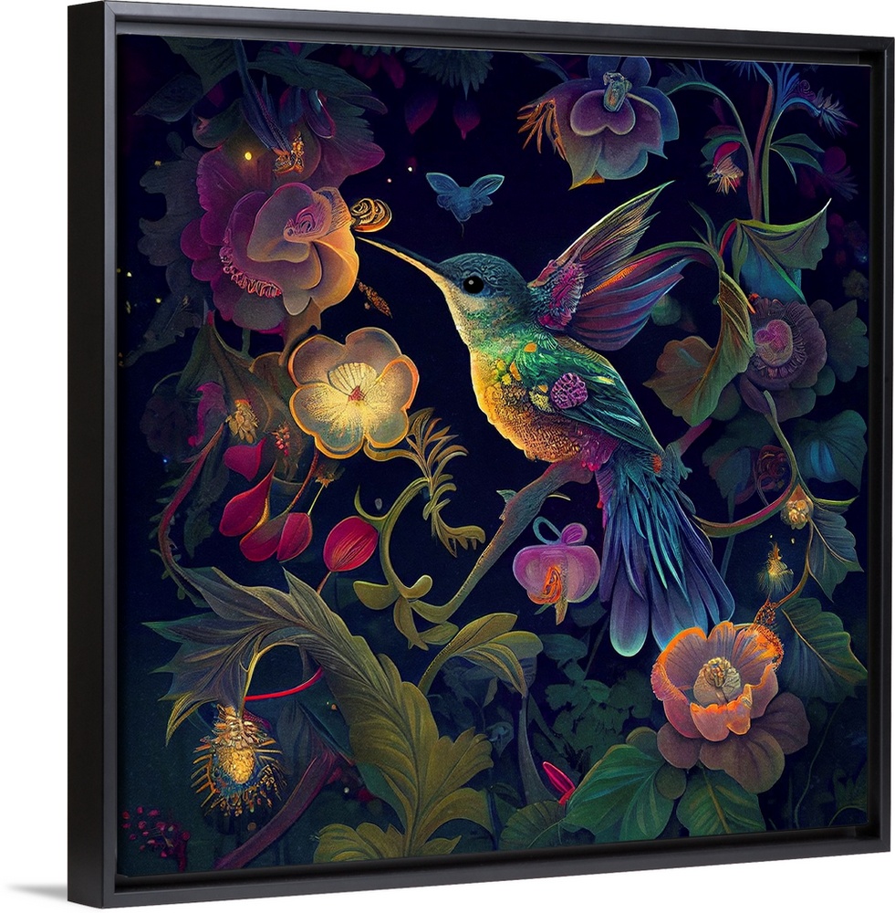 <p>This image by JK Stewart for Duirwaigh Studios is of a hummingbird with glowing florals.</p>