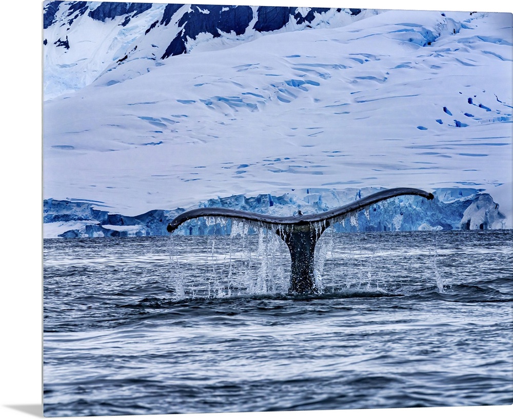 <p>Humpback baleen whale tail chasing krill blue, Charlotte bay, Antarctica.</p>