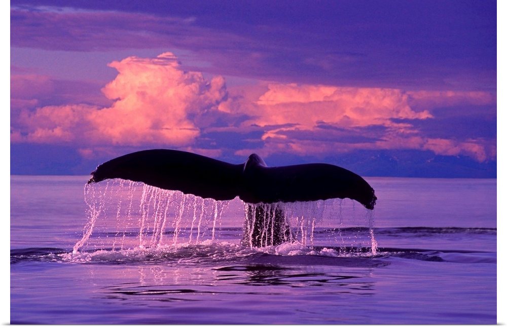 <p>Humpback Whale lifts flukes as it dives at sunset in Lynn Canal, SE Alaska. CompositeComposite.</p>