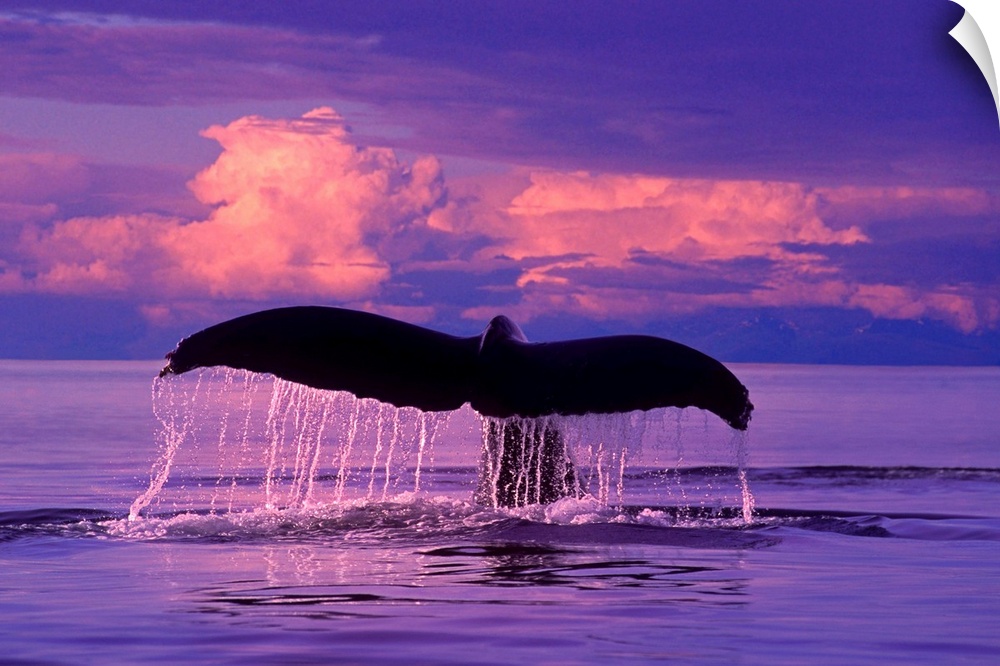 <p>Humpback Whale lifts flukes as it dives at sunset in Lynn Canal, SE Alaska. CompositeComposite.</p>