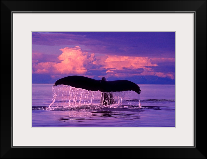 <p>Humpback Whale lifts flukes as it dives at sunset in Lynn Canal, SE Alaska. CompositeComposite.</p>