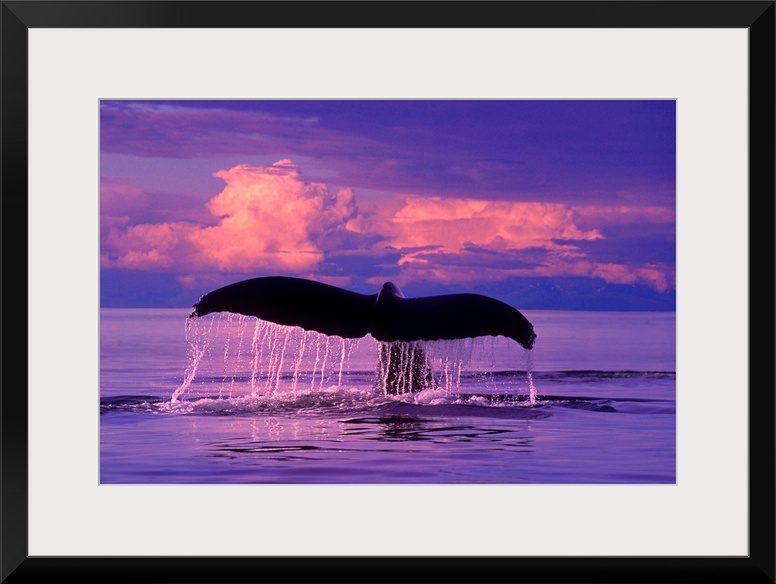 <p>Humpback Whale lifts flukes as it dives at sunset in Lynn Canal, SE Alaska. CompositeComposite.</p>