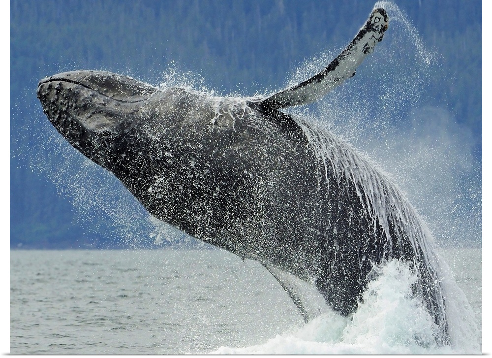 <p>Humpback whale breaching near Juneau during summer in southeast Alaska.</p>