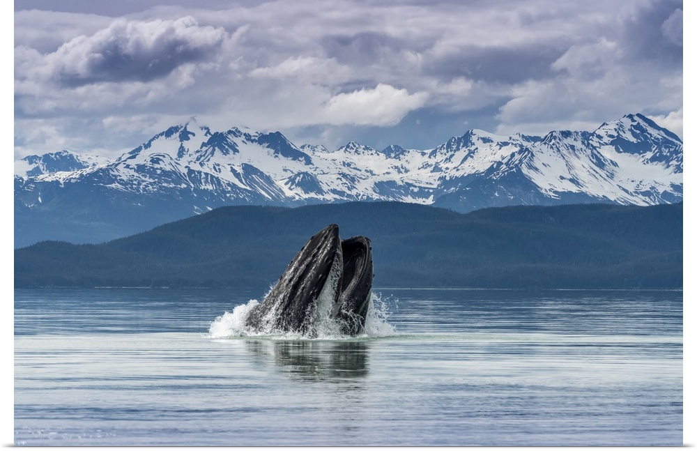 <p>Humpback whale (Megaptera novaeangliae) lunge feeding for herring with a view of throat pleats, Inside Passage, Lynn Canal; Alaska, United States of America</p>